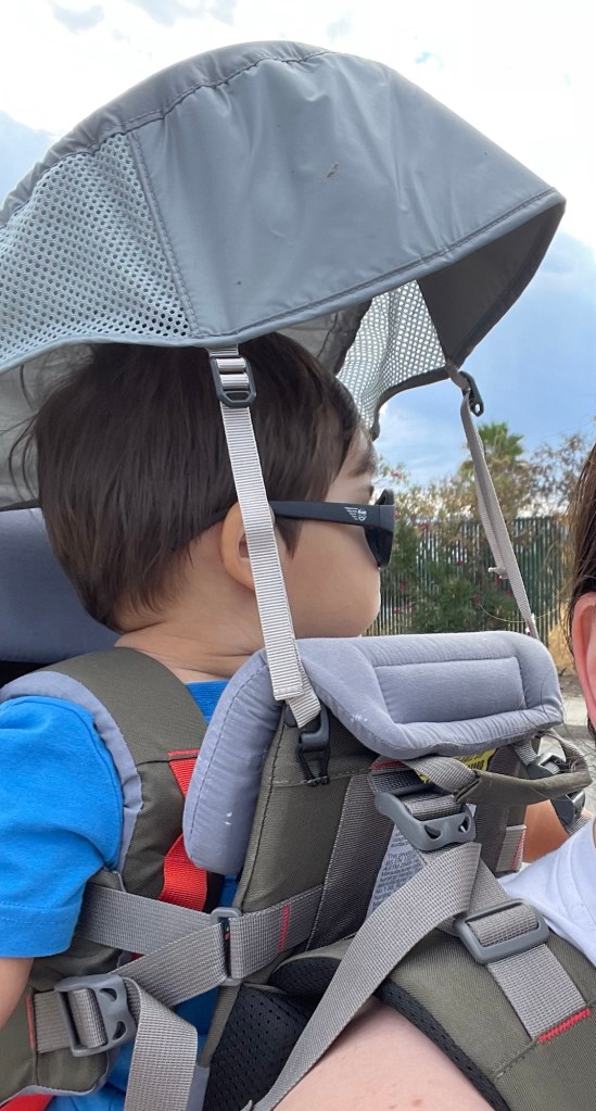 - Hand mirror – the hiking backpack I have came with a small mirror which I use constantly. When C falls asleep, I check often to see if his neck is supported or if I need to change his position.